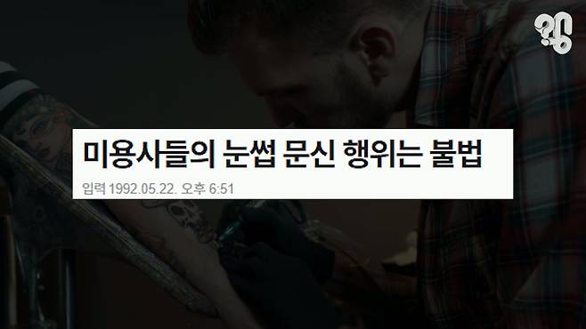 문신이 불법이 된 건 사실상 1992년 대법원 판결 이후부터다. 당시 대법원은 비의료인의 문신 시술을 '의료행위'로 보고 사실상 의료법 위반으로 천명했다. 시술 도중 침 등을 사용하기 때문이다.