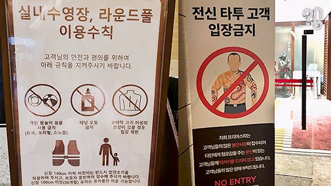 이 사진을 보라. 서울의 한 호텔과 헬스장 입구에 부착된 ‘노타투존’ 안내문. 과도한 문신을 한 사람의 입장을 제한하는 내용인데, 비공식 문신 인구 1300만 명 시대.