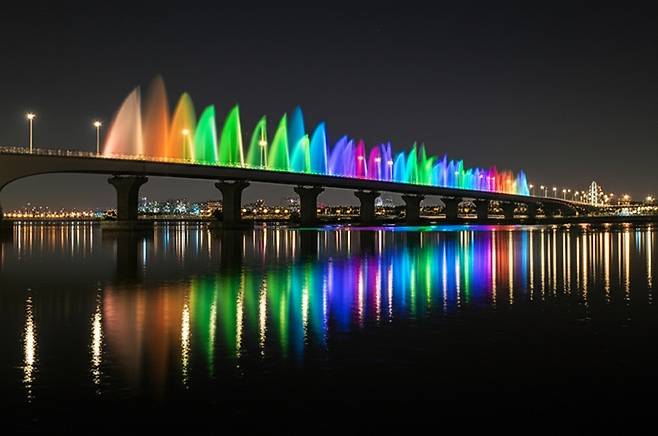 달빛무지개분수는 반포대교에 설치된 세계 최장 교량 분수로, 기네스북에도 등재되었습니다. 음악과 조명에 맞춰 형형색색의 물줄기가 춤추는 모습은 감탄을 자아내게 합니다. 특히 밤에는 더욱 화려하게 빛나며, 서울의 아름다운 야경을 완성합니다.