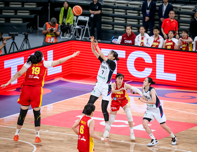 박수호 감독이 이끄는 한국(FIBA 랭킹 14위)은 19일 중국 선전 스포츠센터에서 열린 2025 FIBA(국제농구연맹) 여자농구 아시아컵 3, 4위전 중국(FIBA 랭킹 4위)과 맞대결에서 66-101로 패했다.