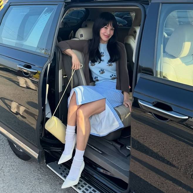 그녀의 패션 감각 또한 여전하다. 하늘색 니트에 브라운 카디건, 경쾌한 체크무늬 스커트를 매치해 소녀 같은 매력을 뽐냈다.