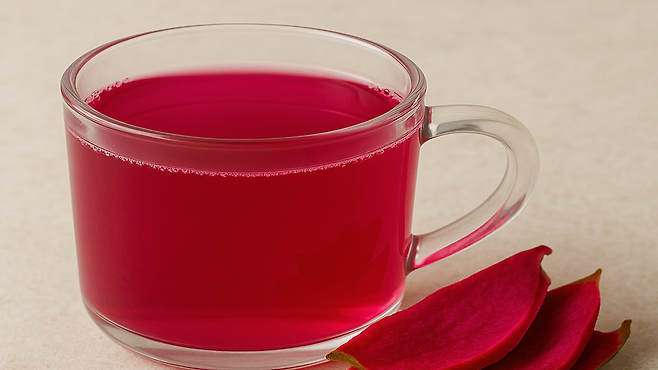 용과 껍질의 항산화 성분은 열에 강한 폴리페놀 구조 덕분에 끓여도 영양 손실이 적습니다. 껍질을 깨끗이 세척한 뒤 끓는 물에 10~15분간 우려내면 은은한 자줏빛의 차가 완성됩니다.