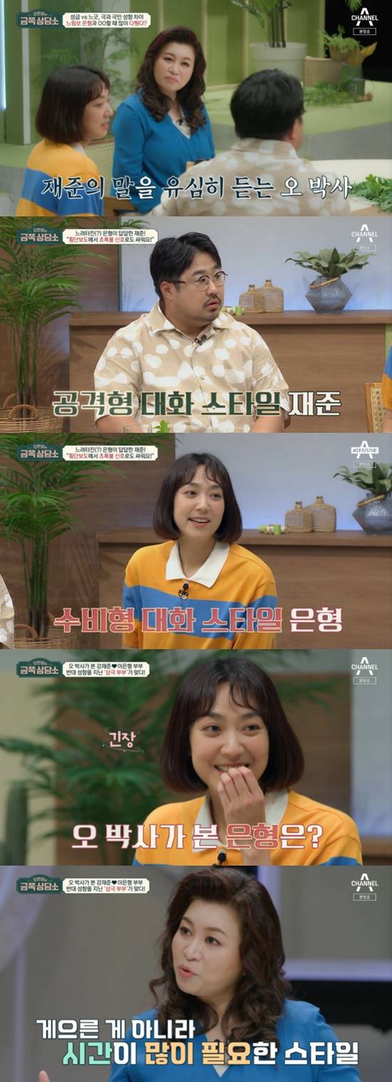 부부의 대화 방식을 지켜본 오은영은 "표현하는 방식이 너무 다르다. 강재준은 넘치는 에너지로 바쁘게 돌아다니는 타입이고, 이은형은 게으른 게 아니라 시간이 많이 필요한 타입"이라고 분석했다.
