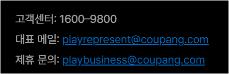 🔹이메일: playrepresent@coupang.com (일반) / playbusiness@coupang.com (제휴)