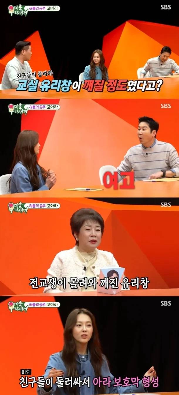 이후 친구들이 자발적으로 고아라 주변을 둘러싸고 보호하며 이동했다고 하니, 학교에서는 그 자체로 ‘연예인’이었다.
