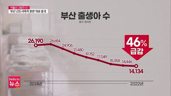 10년 전 2만 6천여 명이었던 부산의 출생아 수는 지난 2022년 1만 4천여 명으로 46% 급감했습니다.