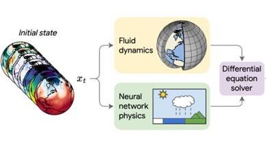 대안으로 하이브리드 모델이 제안되고 있다. 하이브리드 모델은 수치예보 모델과 AI 모델을 결합한 것이다. 특히 주목받는 것이 PINN(Physics-Informed Neural Network)이다. PINN은 물리적 제약 조건을 반영해 AI 모델을 훈련시킨다. 물리 법칙에 기반한 가상 데이터를 생성해 훈련 데이터를 보강하는 데이터 증강 방법과, 신경망의 손실함수(AI모델이 예측한 값과 실제 값 사이의 차이를 측정하는 함수. 모델의 성능을 평가하고, 원하는 방향으로 유도하기 위해 사용)에 물리 법칙을 적용시켜 AI모델이 물리 법칙을 준수하도록 강제하는 방법 등이 있다.