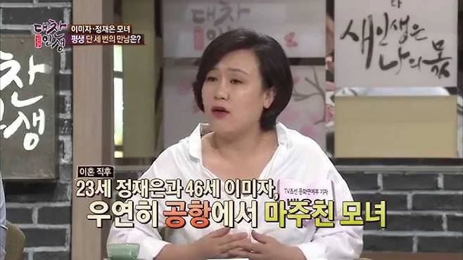 정재은이 결혼한 지 6개월 만에 이혼했던 상태였는데 이미자를 공항에서 마주쳤다.