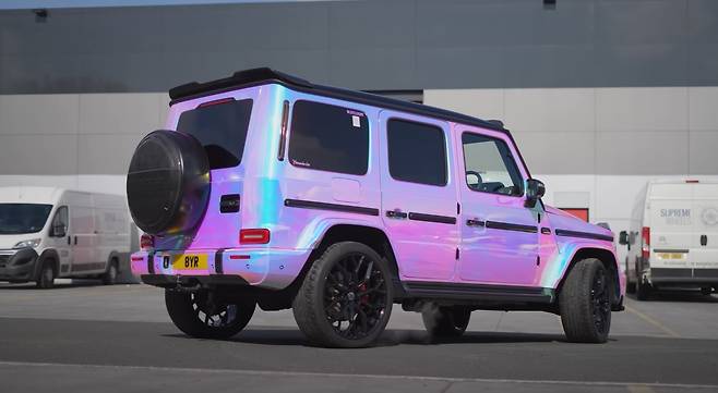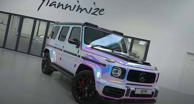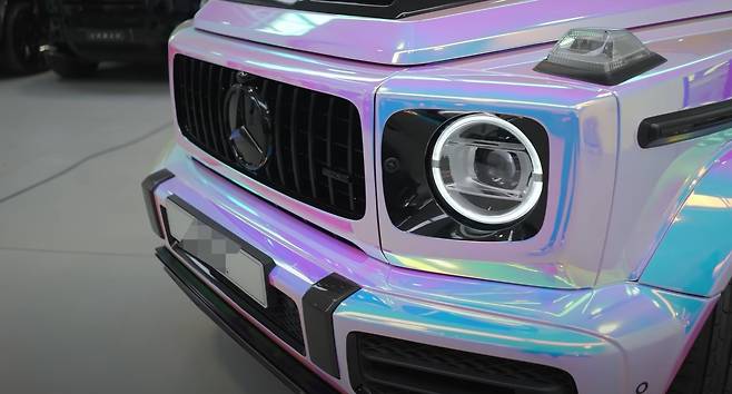 직접 커스텀 도장 작업소에 찾아가 제작한 유니콘 무지개빛의 메르세데스 AMG G63은 각도에 따라 오묘하게 색상이 달라지며 반짝이는 아름다운 빛을 가졌다.
