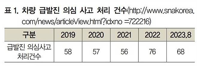 최근 급발진 의심 사고가 많이 보도되면서 사고기록장치가 세간의 관심을 받고 있다. 자동차 리콜센터는 신고자가 급발진이 의심된다는 의견으로 별도 신고한 내역을 수집하고 있는데, 아래와 같이 2019년 58건에서 2022년에는 76건까지 증가하고 있다. 이렇게 급발진 의심 사고가 증가하면서 많은 사고 당사자와 일반시민들이 사고기록장치에 저장되는 데이터의 정합성과 장치의 실효성에 대한 의문을 품기 시작했다.