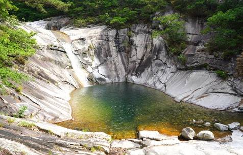 부산 근교 밀양 호박소계곡과 얼음골입니다. 호박소는 높이 10m 폭포로 인해 움푹 파인 못이 마치 호박 절구처럼 생겼다고 해 붙여진 이름인데요. 독특한 계곡의 모습과 계곡을 감싸고 있는 뛰어난 자연경관으로 <한국의 명수 100선>에 선정되기도 한 부산 근교 계곡입니다.