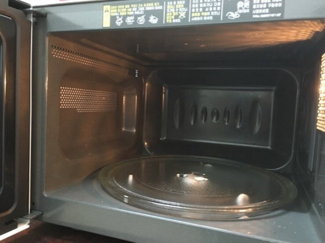 전자레인지 속 찌든 때를 부드럽게 녹이려면 뜨거운 스팀의 힘을 이용해야 합니다. 흔한 수세미질은 오히려 코팅을 훼손하고, 세균의 번식처가 될 수도 있어요.