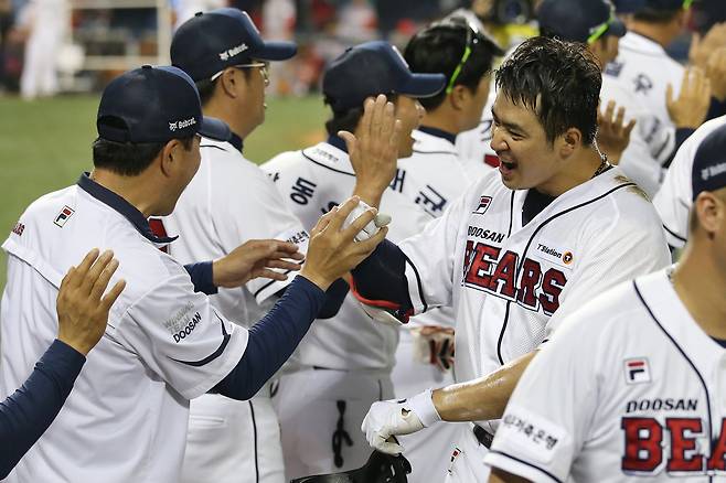 두산이 승기를 잡은 것은 3회초. 외국인 타자 제러드 영의 2점홈런과 허경민의 싹쓸이 3타점 2루타를 포함해 대거 7득점하면서 8-2로 앞서나갔다.