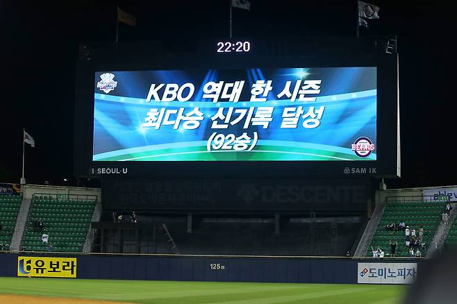 두산이 이날 작성한 30점은 KBO 최초의 기록. 1997년 5월 4일 삼성이 대구 LG전에서 27-5로 승리할 때 기록한 27점을 넘어선 신기록이 됐다. 구단의 역대 한 경기 최다 득점 기록인 24득점(2022년 5월 26일 대전 한화전 24-3)도 추월했다. 아울러 종전 KIA가 보유하고 있던 최다 점수차 승리(2022년 7월 24일 부산 롯데전 23-0)도 넘어섰다.