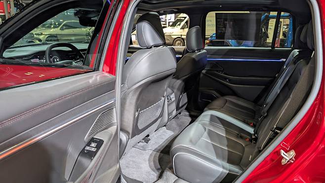 12방향 전동 조절 가능한 운전석은 편안하지만 측면 지지대는 그리 두드러지지 않다. 뒷좌석은 전형적인 전기차의 무릎이 약간 올라가는 자세로, 넓은 벤치 타입이다. 컵홀더가 있는 센터 암레스트, 레그룸을 추가로 확보할 수 있는 오목한 앞좌석 등받이, 적절한 각도의 리클라인 기능이 제공된다. 뒷좌석 편의 시설로는 에어벤트, 두 개의 충전 포트, 시트백 포켓, 최상위 버전의 열선 및 통풍 기능이 포함된다. 파노라믹 선루프는 많은 빛을 들여보내 실내를 실제보다 더 넓게 느끼게 한다.