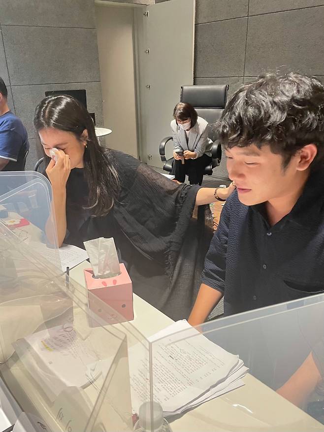 "한효주 배우와 이정하 배우 대본 리딩 중. 엄마와 아들이 감정적으로 대립하는 7회의 엔딩 장면이었는데, 두 배우가 무섭게 극에 몰입하면서 결국 눈물이 터지고 말았다."