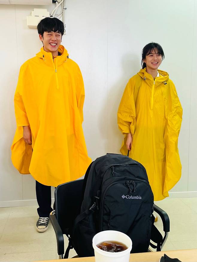 "이정하 배우와 고윤정 배우가 노란 우비로 의상 피팅을 하고 나란히 서있는 이 사진은 오랫동안 내 작업실에 붙어있었다. 이정하 배우는 봉석 캐릭터를 위해 살을 찌우겠다더니, 몇 달 후 정말로 30kg을 증량하고 나타나서 또 한 번 놀랐다."