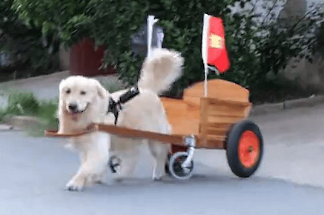 중국의 한 여성 견주가 정말 기발한 아이디어로 반려견을 위해 네 바퀴 달린 작은 수레를 제작했습니다. 그리고 강아지에게 학교에서 아이를 데려오는 특별한 임무를 부여했습니다.