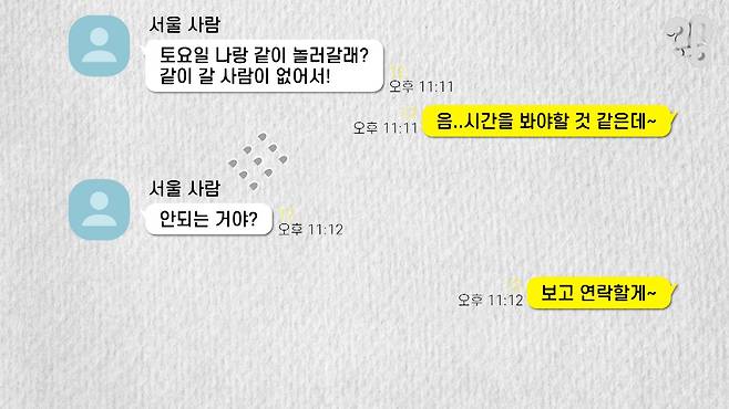 같은 ‘날 좋다’라는 말도 상황에 따라 180도 다른 의미가 될 수 있다는 말이다. 이건 충청도 사람 특유의 배려에서 나온다고 설명하는데, 상대방에게 거절할 때 상처 주지 않으며 의미하는 바는 넌지시 전달하는 식으로 언어가 발전했기 때문이다. 근데 이렇게 간접적으로 말하는 게 더 무서운 것 같기도 하고...? 그래서 요즘 사람들은 답답해하기도 한다고