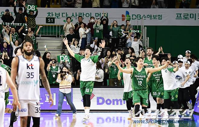 [포토] 원주 DB '수원 KT 잡고 정규 시즌 우승'