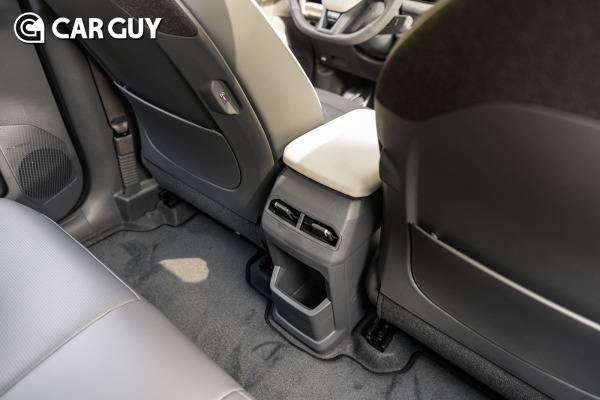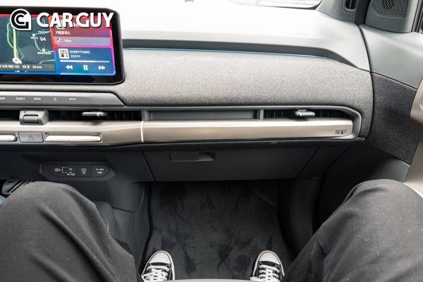 시승할 때, 2열 레그룸을 살피는 경우는 있어도 1열 레그룸을 살피는 경우는 드물다. 하지만 EV3 실내 공간에서 가장 크게 체감된 부분은 조수석 레그룸 공간감이다. 부피를 대폭 줄인 공조장치 'THIN HVAC'가 적용되면서 조수석 탑승객의 발 자유도가 대폭 향상됐다.