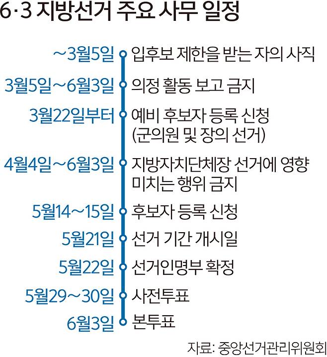 6·3 지방선거 의원직 사퇴시한은 5월4일까지다.