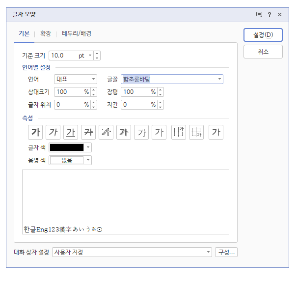 2. 글자모양 세팅 [ALT+L]