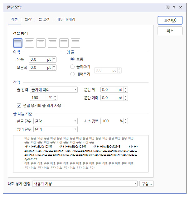 3. 문단 세팅 [ALT+T]