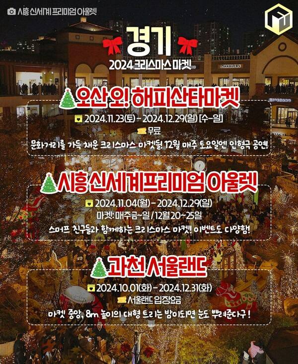 오늘 여행톡톡은 연말에 가볼만한 2024 국내 크리스마스 마켓 일정을 총정리해 소개합니다. 단순한 크리스마스 마켓 뿐 아니라, 즐길거리와 볼거리, 놀거리와 포토존이 가득하며 이국적인 분위기까지 담고 있는 크리스마스 마켓을 위주로 소개해드리니 연말까지 주말 당일치기로 크리스마스 마켓에서 즐거운 시간을 보내시는 데에 도움이 되길 바랍니다.
