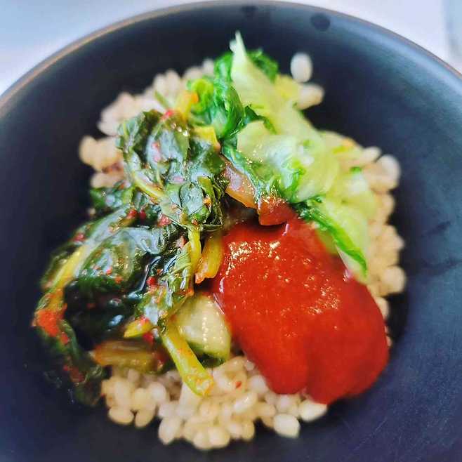 보리밥과 육수, 칼국수가 무한으로 리필이 가능한 시흥 '뉴욕해물칼국수'. 이곳의 해물칼국수는 마치 샤브샤브를 먹는 듯한 느낌으로 육수를 끓이다가 각종 채소와 깨끗하게 손질된 오징어와 가리비, 오만둥이 등 해물을 넣어 먼저 먹고 마지막으로 칼국수를 끓여 먹는다. 해물이 들어가 시원한 국물 맛이 일품. 칼국수를 먹기 전 나오는 보리밥에 열무와 양념장을 넣어 비벼 먹으면 에피타이저로 손색이 없다.