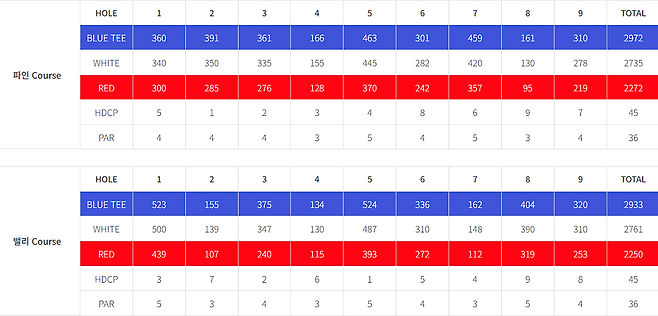 - 골프장: 프린세스 GC - 파인/ 밸리 코스