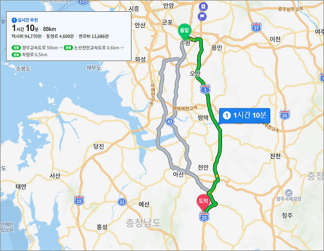 이동 거리 / 접근성: 6 점 (수원 시청역 >> 프린세스 GC)