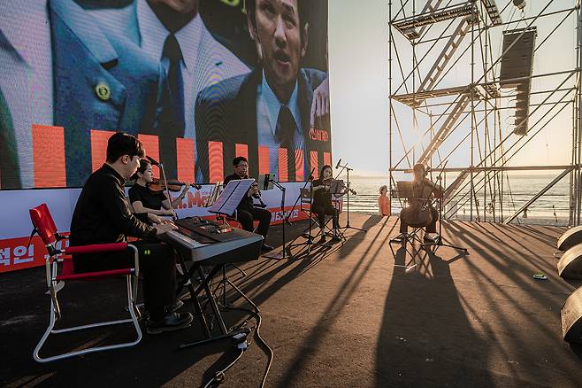 25일 오후 6시30분 전북 부안 변산 해수욕장에서 청춘을 주제로 5편의 영화를 무료 상영하는 프로그램 '팝업 시네마:부안 무빙'(Pop-Up Cinema: Buan Moving)의 개막식 개최 및 개막작 상영이 진행됐다.