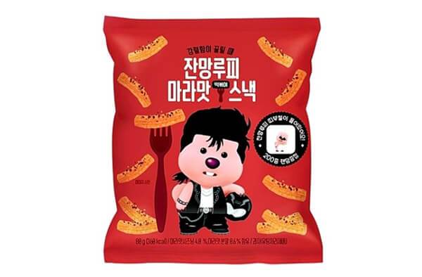 편의점의 콜라보 마케팅으로 최근 주가를 높이고 있는 잔망루피를 마라맛 과자로도 만날 수 있다. 어니스트에프앤비에서 출시한 ‘잔망루피 마라맛 떡볶이 스낵’이 바로 그것이다. 스낵 마니아들에게 익숙한 떡볶이맛 과자의 외관을 가지고 있으면서, 마라맛 시즈닝과 분말이 가득 뿌려져 얼얼한 매콤함을 즐길 수 있는 제품이다. 제품에는 잔망루피의 모습을 담은 띠부씰 200종 중 하나가 동봉돼 있다. 편의점 기준 판매가는 2,200원이다.