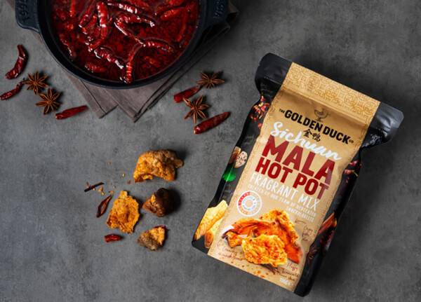 ‘골든덕 크리스피 스낵 마라훠궈맛’은 중국 쓰촨을 대표하는 요리인 마라훠궈의 재료와 매콤얼얼한 맛을 그대로 구현한 스낵 믹스다. 고소한 생선 껍질, 달큰한 양송이버섯 칩, 얇고 꼬들한 식감의 두유피 등 3가지의 훠궈 재료를 활용했다. 여기에 17가지의 향신료를 특별하게 배합한 후 구워서 완성한 과자다. 마라훠궈 본연의 중독성 강한 맛과 각종 재료의 다채로운 맛을 함께 즐길 수 있다. 102g 용량 제품의 판매가는 10,000원이다.