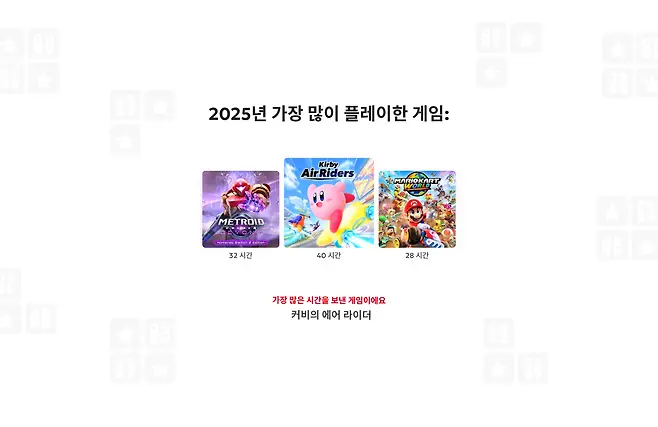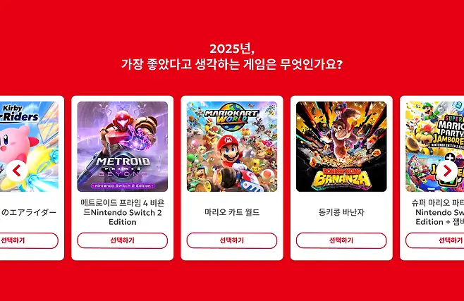 2025년에 플레이한 닌텐도 게임들을 직접 돌아볼 수 있는 '닌텐도 스위치 2025 연간 결산' 페이지가 오픈됐다.