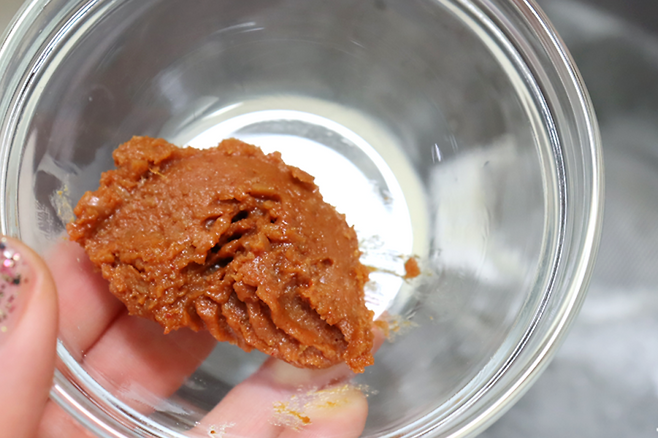 육수가 끓으면 된장을 체에 걸러 곱게 풀어줍니다. 된장이 뭉치지 않도록 국자로 저어가며 풀어야 국물이 탁해지지 않아요.