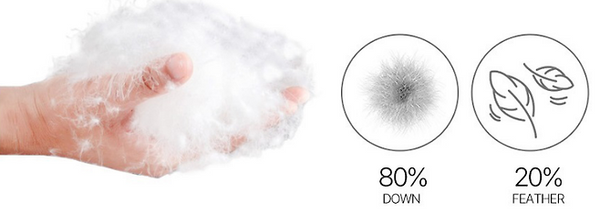 솜털의 함량이 높을 수록 고품질인 덕 다운,