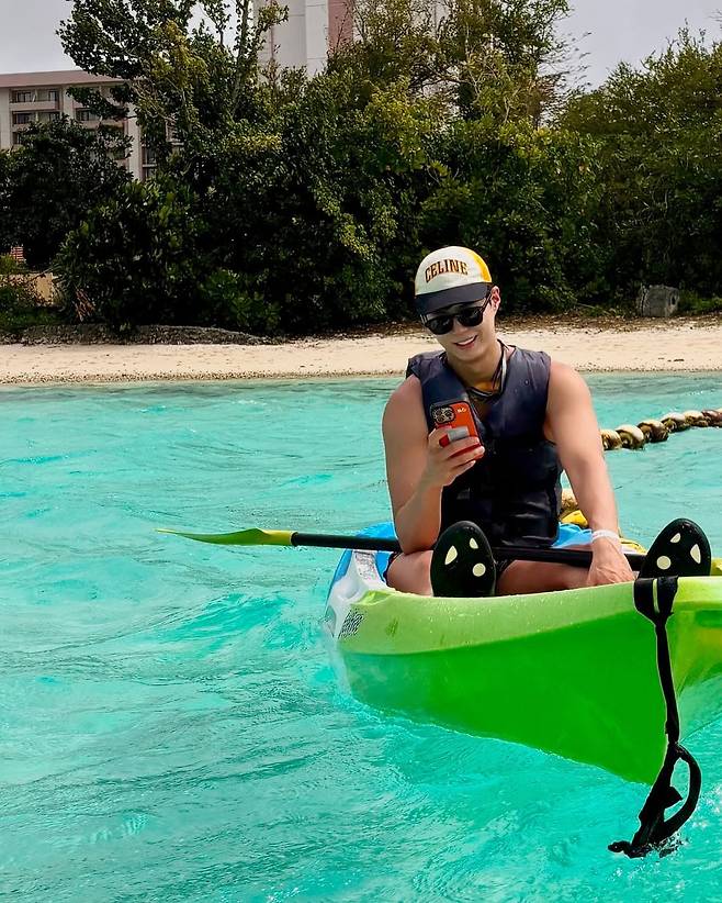 카약을 즐길 땐 블랙 민소매와 스포티한 선캡으로 액티브한 무드를 살려, 편안하면서도 감각적인 스타일링을 완성했다.