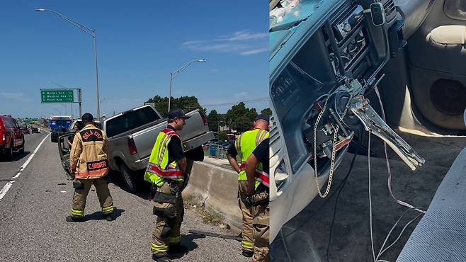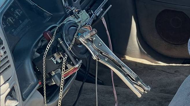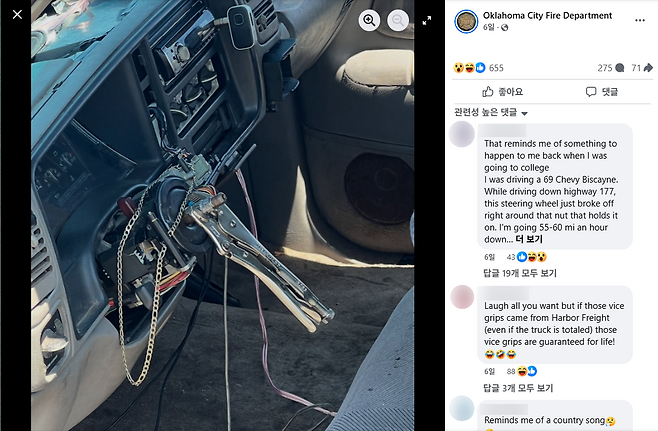 최근 미국 중부 오클라호마주의 오클라호마시티에서 발생한 차량 연쇄 추돌 사고 현장에서 구조대원들이 믿기 어려운 광경을 목격했다. 사고에 연루된 쉐보레 실버라도 픽업트럭이 운전대를 제거한 채, 바이스그립이라는 공구를 장착해 조향하고 있었던 것이다.