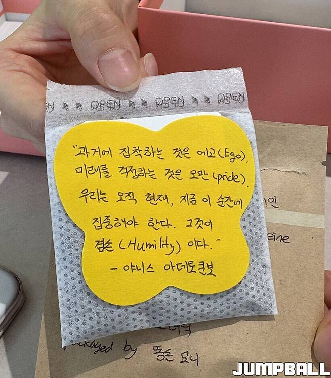 “이거는 야니스(아데토쿤보)의 말이지만, 코멘트가 되게 다양하게 있어요. 열 때마다 다른 코멘트가 있으니 ‘뭐가 있을까’라는 기대감도 있어요. 이 분 T 아닌 거 같은데… MBTI 다시 한번 검사해 보셔도 될 거 같아요. 너무 따스한 분이에요.” F(감정형)가 아니고서야 이렇게 할 수는 없을 것 같다.