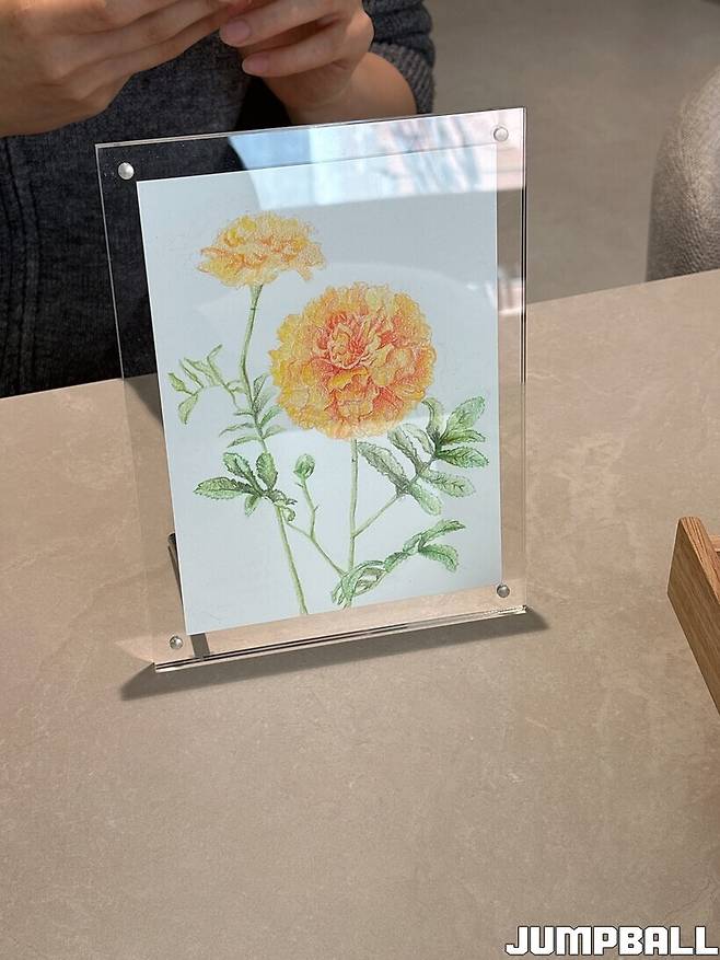 그런데 이게 웬걸. “와 꽃 사진 되게 이쁘다”라고 생각하고 있던 찰나, 반전이 있었다. “기자님 근데 이거 사진 아닙니다. 팬께서 직접 그리신 거예요!!! (헐 진짜요?) 네! 신기하죠? 저도 당연히 사진인 줄 알았는데… 손수 그려서 이걸 주시니까, 감동이 최대치에 도달했죠.” 금손 팬의 그림 실력에 약 20초간 김지영과 함께 박수를 쳤다. 진짜 대박!