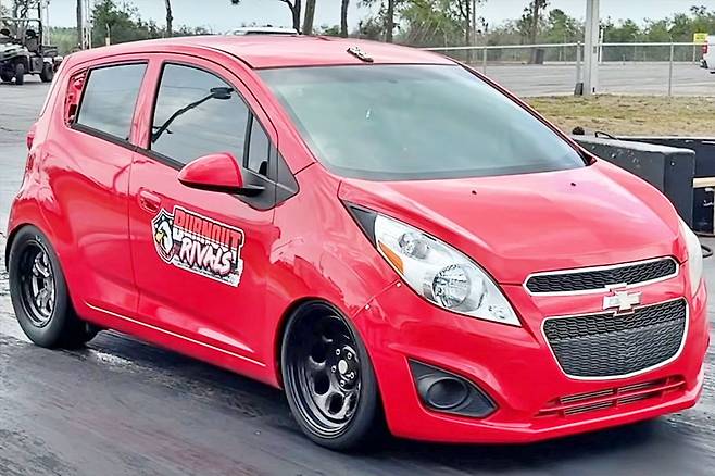 쉐보레 스파크는 귀엽고 실용적인 소형차로 사랑받아 왔다. 하지만 최근 스파크가 미국 드래그 레이스 현장에서 괴물급 튜닝카로 변신했다는 사실이 전해지면서 네티즌에게 신선한 충격을 주었다. 이 차량은 외형만 스파크일 뿐, 그 안에는 시판 차량과 전혀 다른 괴력이 숨겨져 있다. 튜닝 유튜버 클리터스 맥팔랜드 팀이 제작한 이 차량은 최근 400m 드래그 구간을 9.995초에 주파하며 세계에서 가장 빠른 스파크 타이틀을 거머쥐었다.