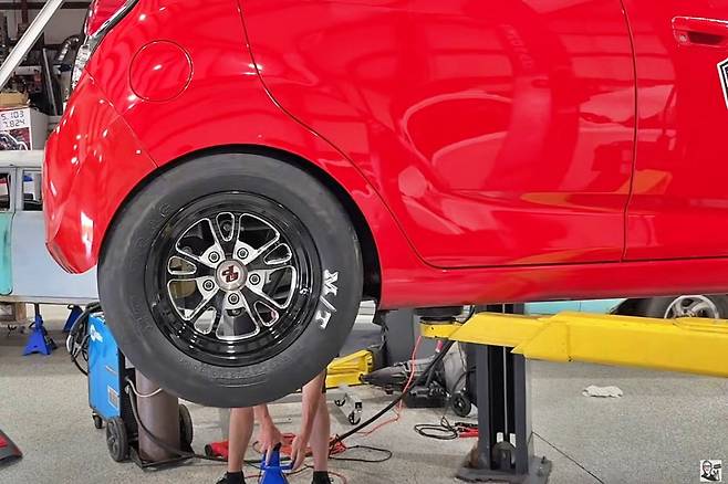 강력한 파워트레인을 감당하기 위해 차량 하부도 특수 제작됐다. 드래그 스트립에서 1,000마력 이상을 견디기 위해 서스펜션 구조부터 차체 강성까지 모두 강화되었고 타이어 역시 고속에서 폭발적인 토크를 제어할 수 있도록 전용 래디얼 사양이 탑재됐다. 일반인이 봤을 때는 단순한 스파크지만 레이서의 시선에서는 차체를 씌운 로켓에 가깝다는 평가다.