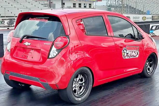 쉐보레 스파크는 귀엽고 실용적인 소형차로 사랑받아 왔다. 하지만 최근 스파크가 미국 드래그 레이스 현장에서 괴물급 튜닝카로 변신했다는 사실이 전해지면서 네티즌에게 신선한 충격을 주었다. 이 차량은 외형만 스파크일 뿐, 그 안에는 시판 차량과 전혀 다른 괴력이 숨겨져 있다. 튜닝 유튜버 클리터스 맥팔랜드 팀이 제작한 이 차량은 최근 400m 드래그 구간을 9.995초에 주파하며 세계에서 가장 빠른 스파크 타이틀을 거머쥐었다.