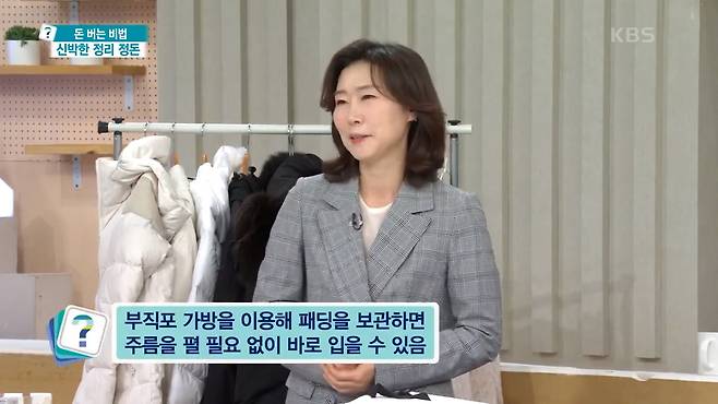 정희숙 : 집에 쇼핑백 쌓아두시는 분들 많아요. 롱패딩 자리 너무 많이 차지하잖아요? 옷걸이도 빼지마세요! 내년에 그대로 꺼내서 사용할 수 있도록 할겁니다.