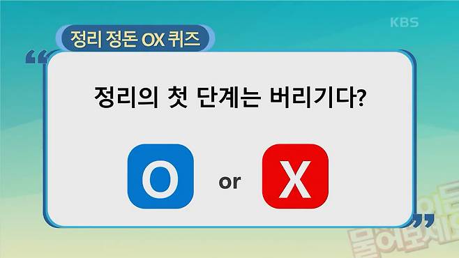 MC : 경제적인 부분도 중요하지만 정리를 하면 가족들간의 불화도 줄어들것 같아요. 하지만 막상 치우려고 하면 어디서 부터 손을 대야 할지 잘모르겠어요. 같이 퀴즈를 풀면서 알아봅시다!