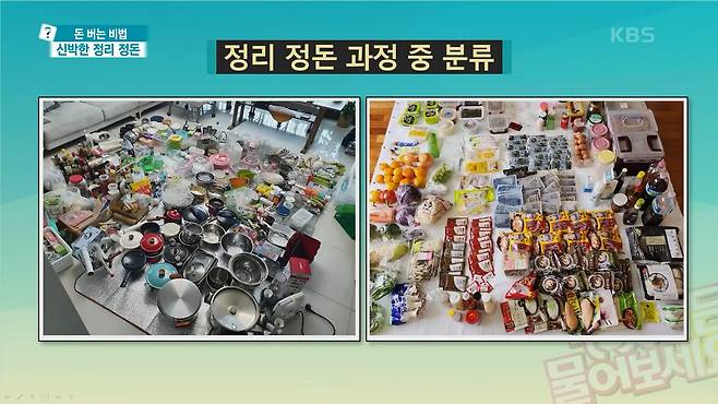정희숙 : 정답은 X입니다. 정리의 첫단계는 버리기가 아니고 분류하기입니다. 모든 물건을 다 꺼내놓습니다.