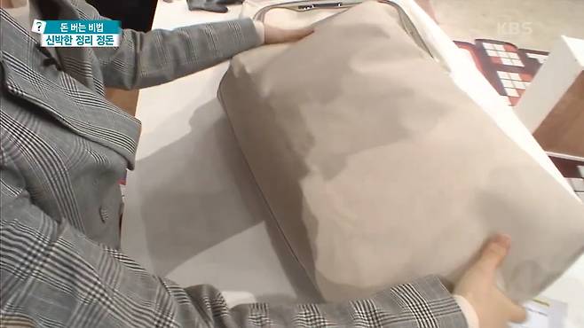 정희숙 : 쇼핑백 크기에 맞게 개주고 쇼핑백안으로 넣어줍니다. 먼지가 들어가지 않게 조금 큰 쇼핑백으로 덮어주면 끝입니다.