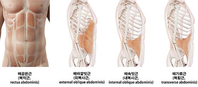 먼저 내 체형에 맞는 복근 운동을 하기 위해서는 복근의 구조에 대해서 간략하게 알아두면 좋아요. 복근은 하나의 덩어리 같지만, 사실은 복직근, 외복사근, 내복사근, 복횡근 4가지 근육으로 이루어져 있어요.